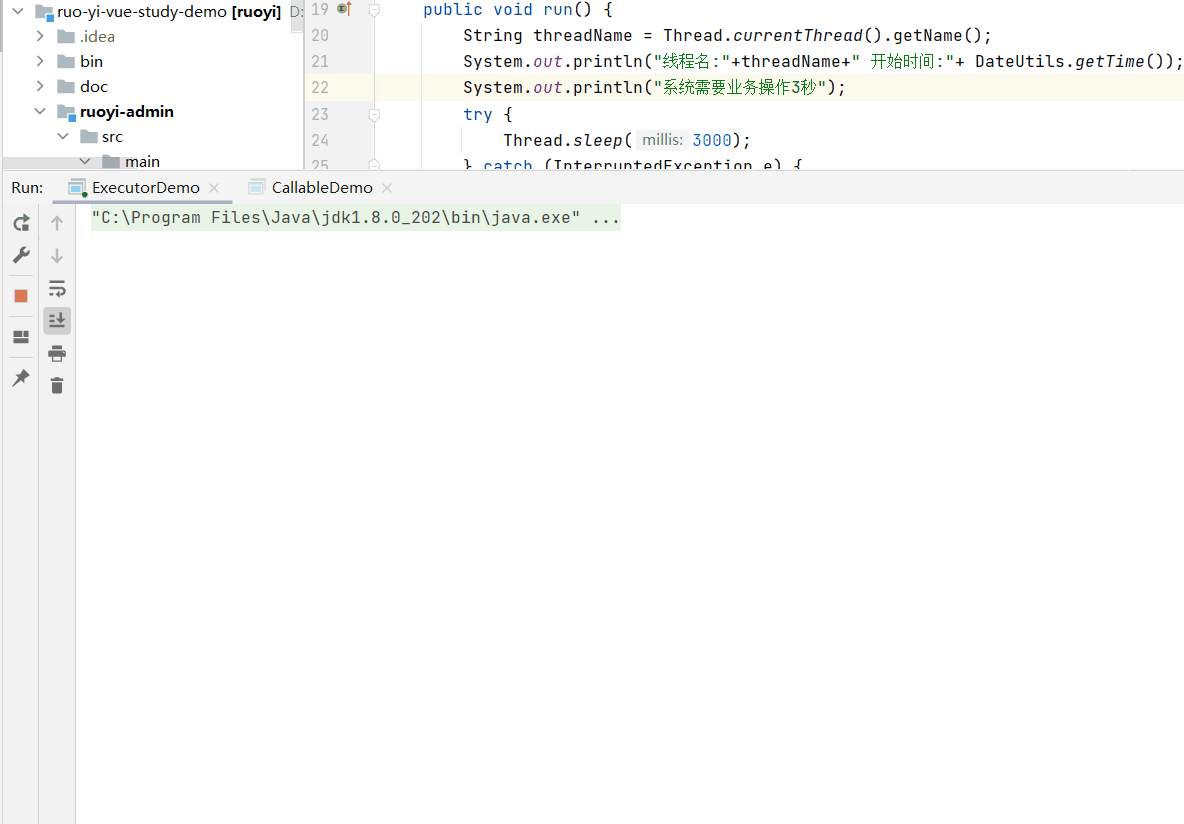 System.out.println("线程名:"+threadName+" 结束时间:"+ DateUtils.getTime());