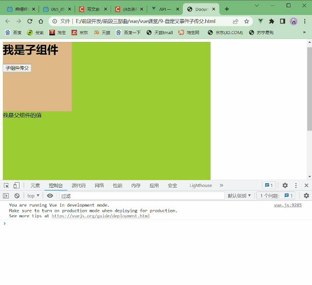 3、$emit:用于事件传递(子组件触发父组件里面的方法)