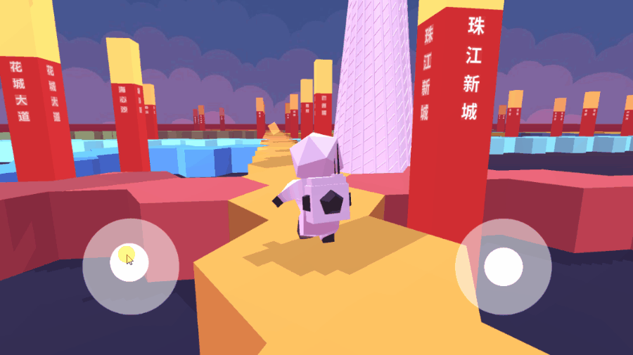 这一看好像与World Space模式的表现是一样的,其实不一样,我们换个视角观察,我让小男孩一直往左走,先看下World Space的效果,