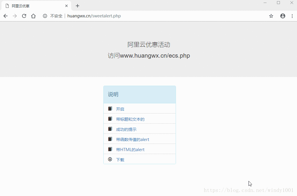 2、函数的更多用法,请访问SweetAlert中文网,同时该项目来源于GitHua的SweetAlert项目