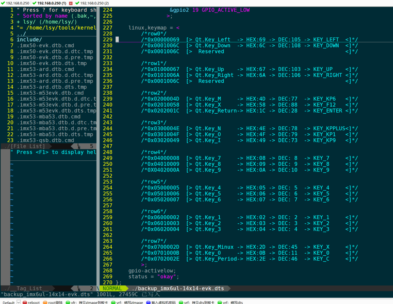 linux,keymap = < /*row0*/ 0x00000069 /* Qt.Key_Left -> HEX:69 -> DEC:105 -> KEY_LEFT */ 0x0001006C /* Qt.Key_Down -> HEX:6C -> DEC:108 -> KEY_DOWN */ 0x0001006C /* Reserved */ /*row1*/ 0x01000067 /* Qt.Key_Up -> HEX:67 -> DEC:103 -> KEY_UP */ 0x0101006A /* Qt.Key_Right -> HEX:6A -> DEC:106 -> KEY_RIGHT */ 0x0001006C /* Reserved */ /*row2*/ 0x0200004D /* Qt.Key_M -> HEX:4D -> DEC:77 -> KEY_KP6 */ 0x02010058 /* Qt.Key_X -> HEX:58 -> DEC:88 -> KEY_F12 */ 0x0202001C /* Qt.Key_Return-> HEX:1C -> DEC:28 -> KEY_ENTER */ /*row3*/ 0x0300004E /* Qt.Key_N -> HEX:4E -> DEC:78 -> KEY_KPPLUS*/ 0x0301004F /* Qt.Key_O -> HEX:4F -> DEC:79 -> KEY_KP1 */ 0x03020049 /* Qt.Key_I -> HEX:49 -> DEC:73 -> KEY_KP9 */ /*row4*/ 0x04000008 /* Qt.Key_7 -> HEX:08 -> DEC: 8 -> KEY_7 */ 0x04010009 /* Qt.Key_8 -> HEX:09 -> DEC: 9 -> KEY_8 */ 0X0402000A /* Qt.Key_9 -> HEX:0A -> DEC:10 -> KEY_9 */ /*row5*/ 0x05000005 /* Qt.Key_4 -> HEX:05 -> DEC: 5 -> KEY_4 */ 0x05010006 /* Qt.Key_5 -> HEX:06 -> DEC: 6 -> KEY_5 */ 0x05020007 /* Qt.Key_6 -> HEX:07 -> DEC: 7 -> KEY_6 */ /*row6*/ 0x06000002 /* Qt.Key_1 -> HEX:02 -> DEC: 2 -> KEY_1 */ 0x06010003 /* Qt.Key_2 -> HEX:03 -> DEC: 3 -> KEY_2 */ 0x06020004 /* Qt.Key_3 -> HEX:04 -> DEC: 4 -> KEY_3 */ /*row7*/ 0x0700002D /* Qt.Key_Minux -> HEX:2D -> DEC:45 -> KEY_X */ 0x0701000B /* Qt.Key_0 -> HEX:0B -> DEC:11 -> KEY_0 */ 0x0702002E /* Qt.Key_Period-> HEX:2E -> DEC:46 -> KEY_C */ >; gpio-activelow; status = "okay";