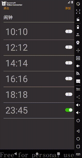 此处有三处状态,第一种状态:第一次进入程序,默认加载固定闹钟子项;第二种状态:进入添加子项页面,然后返回其主页面,并判断其switch是否为ture,如果为ture则添加子项;第三种状态:程序被系统回收或者用户停止程序,并再次进入程序,防止加载前一时刻闹钟子项;